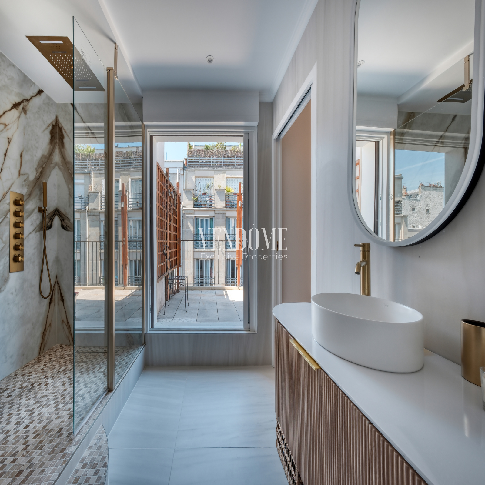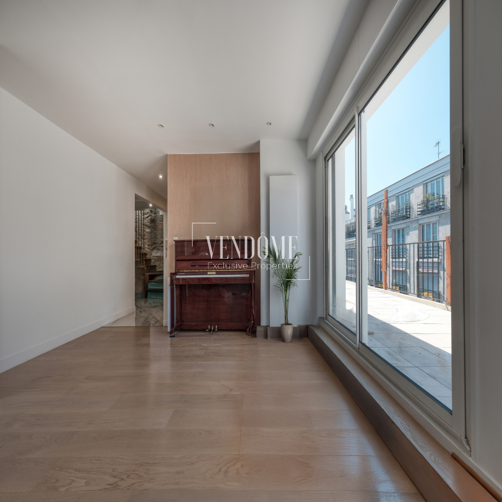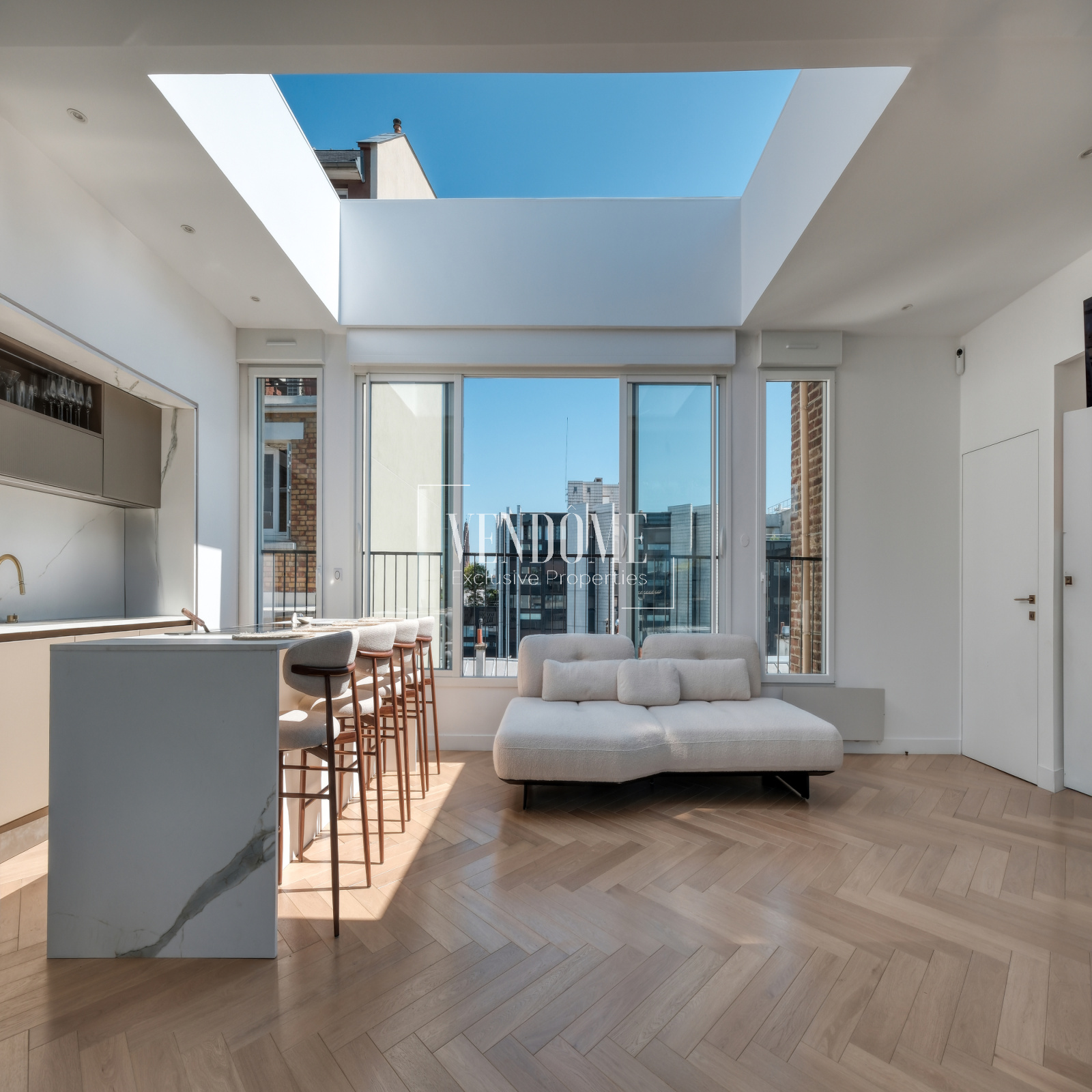 Paris 17éme : Ternes: Vendôme Exclsusive Properties, vous invité à venir decouvrir au sommet d’un immeuble contemporain avec ascenseur, ce duplex rare de 192 m² pondérés s’étire sur deux niveaux lumineux, bordé de deux vastes terrasses de 40 m² chacune.