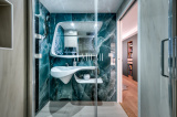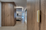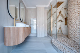 L’étage supérieur, consacré à la réception, révèle un spectaculaire séjour sous verrière motorisée, prolongé par des baies vitrées encastrables qui effacent les limites entre intérieur et extérieur. La cuisine, aux lignes épurées, est équipée d’un îlot central avec plaque teppanyaki. Un WC indépendant complète ce niveau.