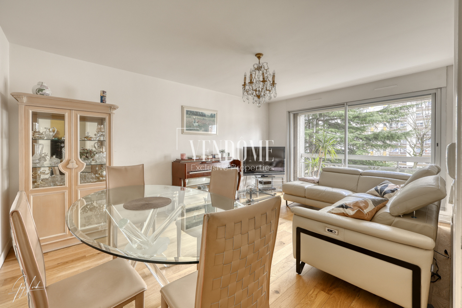 L’appartement s’ouvre sur un séjour élégant et baigné de lumière, pensé pour la réception et les instants de convivialité.