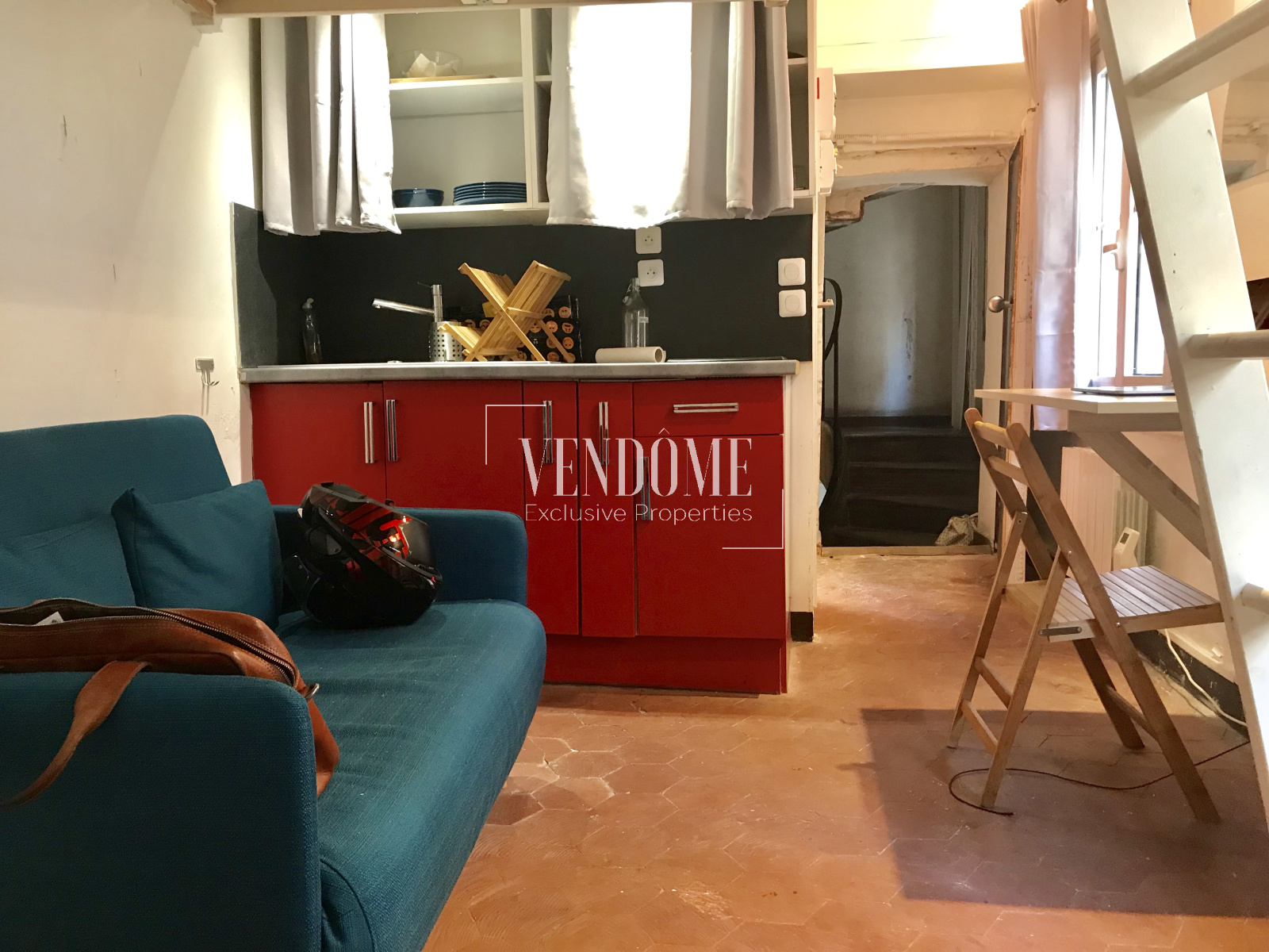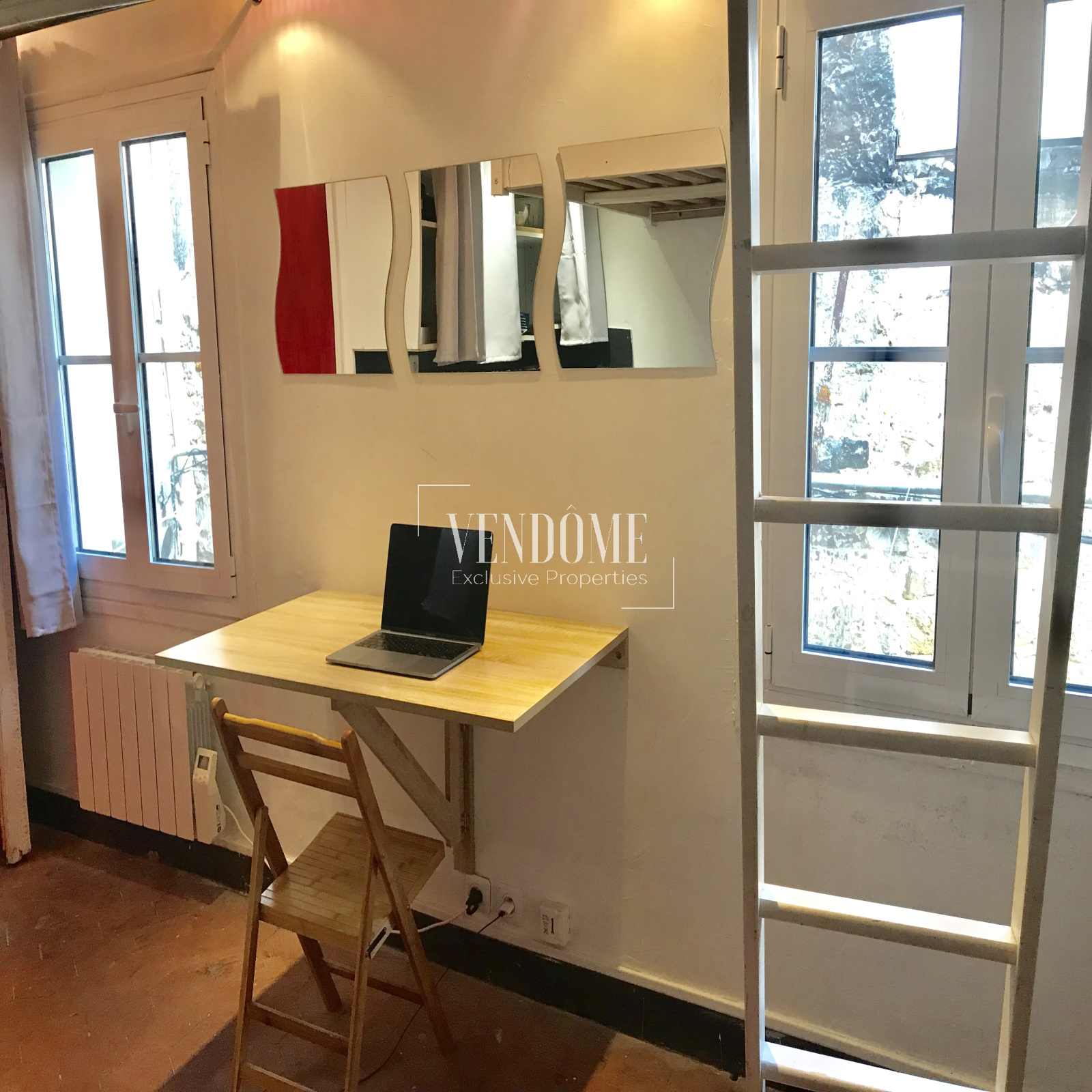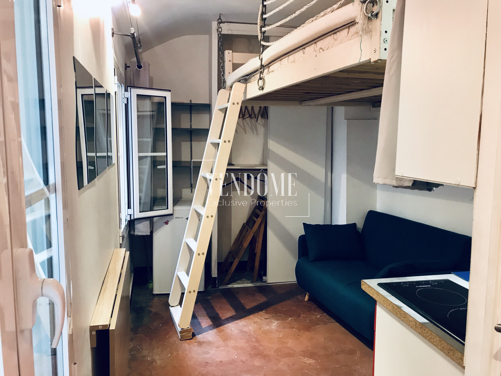 Au coeur d'un quartier très recherché, hyper-centré, dans une copropriété du 18ème siècle, joli studio fonctionnel de 12m2 env., comprenant une pièce principale avec 2 fenêtres et dressing, une mezzanine, une kitchenette, une salle d'eau.