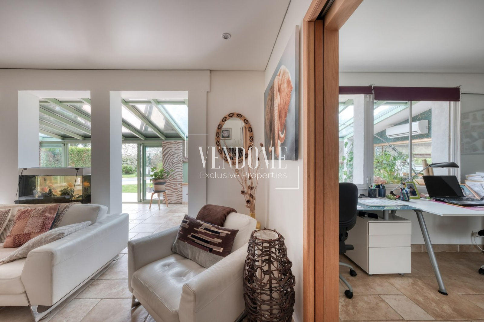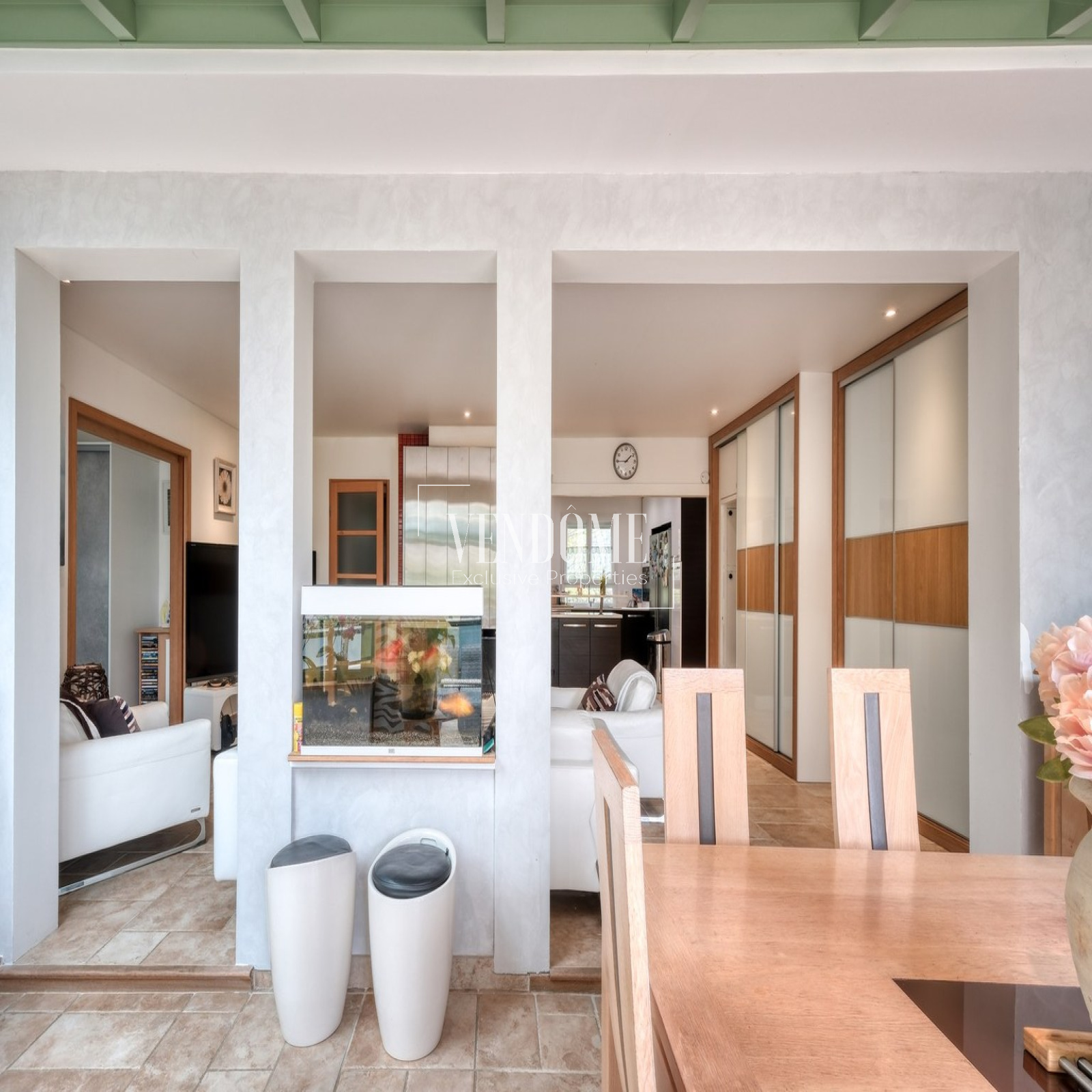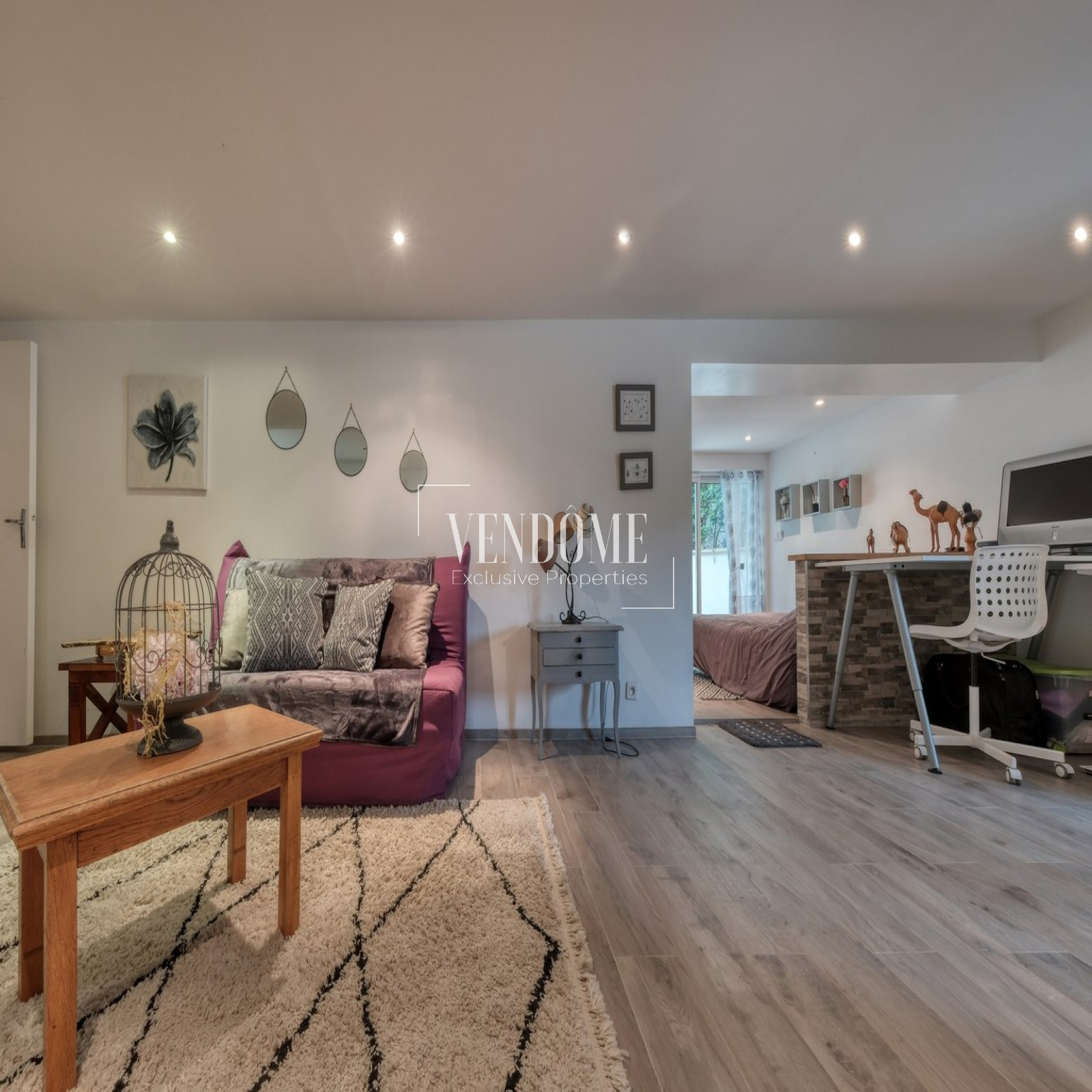 A l'interieur de cette demeure vous y découvrirez un salon, une salle à manger sous véranda ainsi qu'un autre espace salon/lecture, une cuisine semi-ouverte entierement amnénagée et équipée avec des materiaux de qualité et haut de gamme, ouvrant sur une terrasse exposée plein sud, idéal pour des petits déjeuners ensoleillés. Vous y trouverez également une suite parentale avec dressing et salle d'eau à l'italienne, une seconde salle de bains avec baignoire à remous, un toilette invité, un bureau-chambre, et une seconde chambre dotée d'un toit cathédrale. En rez de jardin, vous y trouverez un studio aménagé avec dressing, sa salle de douche et wc, une troisième terrasse. Un espace buanderie, et un garage complètent cette maison. Lumineuse, parfait état, épurée. Prix de vente: 430 000 euros honoraires à la charge du vendeur.