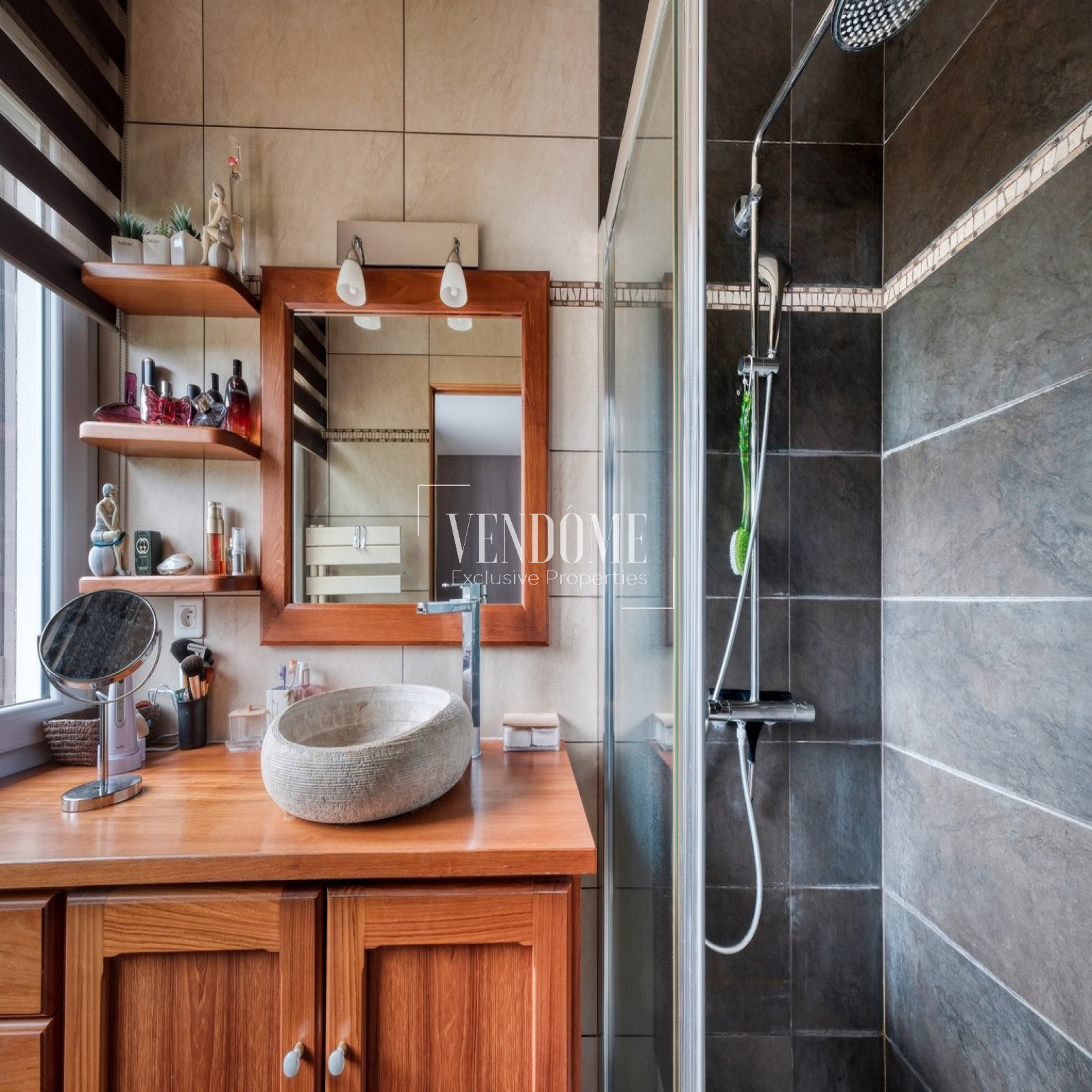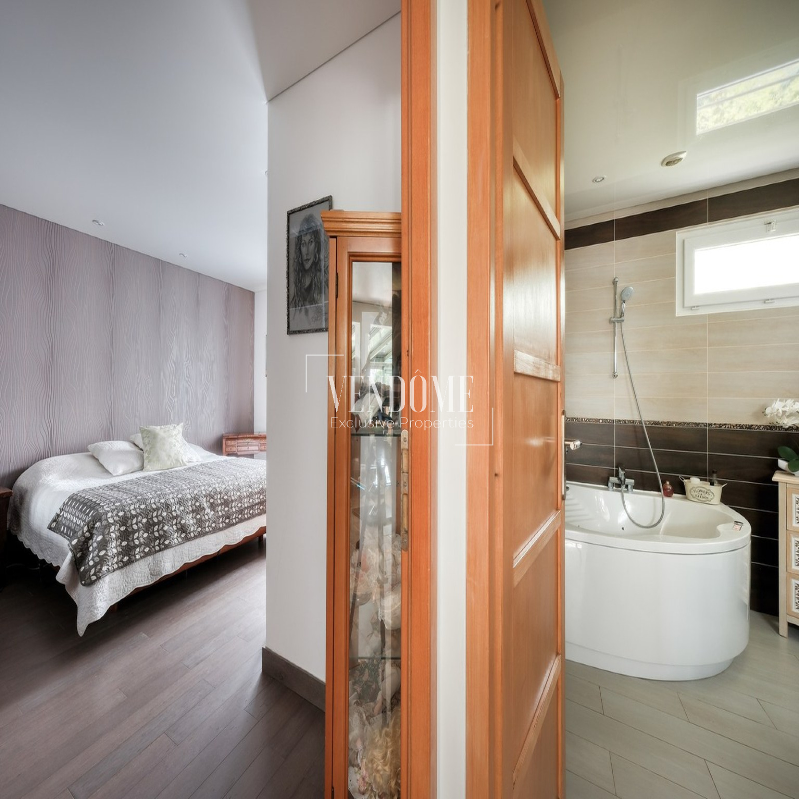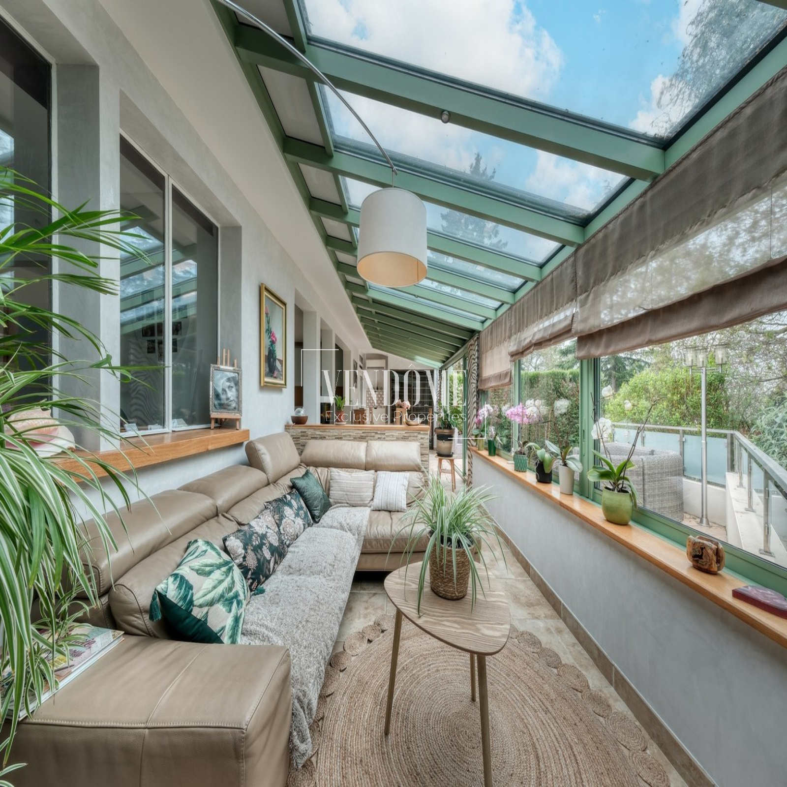 A l'interieur de cette demeure vous y découvrirez un salon, une salle à manger sous véranda ainsi qu'un autre espace salon/lecture, une cuisine semi-ouverte entierement amnénagée et équipée avec des materiaux de qualité et haut de gamme, ouvrant sur une terrasse exposée plein sud, idéal pour des petits déjeuners ensoleillés. Vous y trouverez également une suite parentale avec dressing et salle d'eau à l'italienne, une seconde salle de bains avec baignoire à remous, un toilette invité, un bureau-chambre, et une seconde chambre dotée d'un toit cathédrale. En rez de jardin, vous y trouverez un studio aménagé avec dressing, sa salle de douche et wc, une troisième terrasse. Un espace buanderie, et un garage complètent cette maison. Lumineuse, parfait état, épurée. Prix de vente: 430 000 euros honoraires à la charge du vendeur.