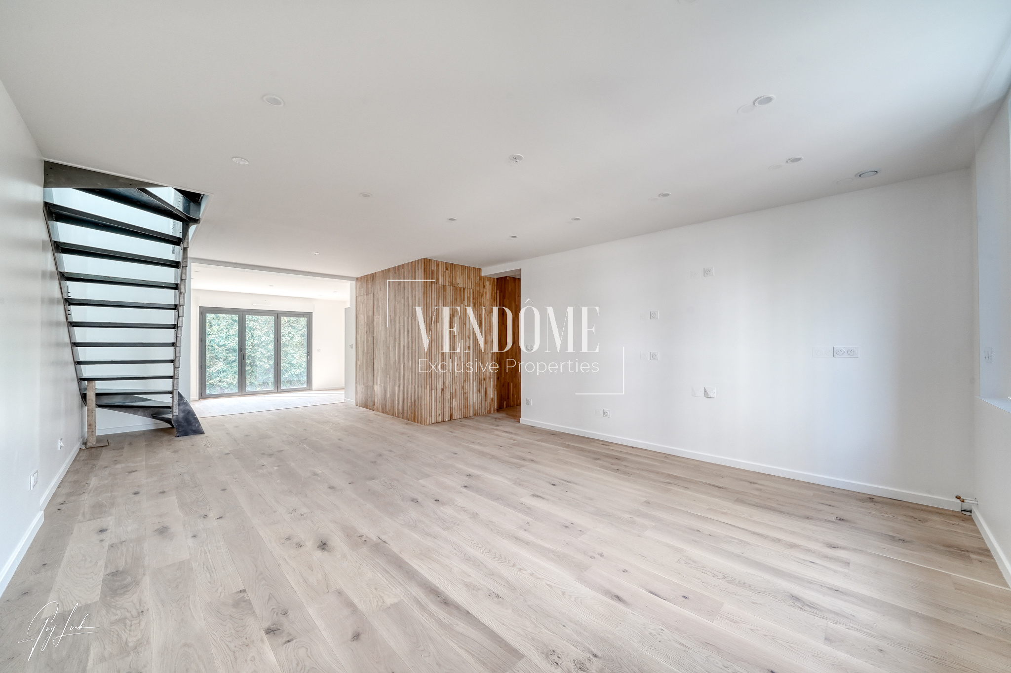 L’ensemble bénéficie d’une belle hauteur sous plafond, de puits de lumière, d’un très faible vis-à-vis, et d’une vue sur parc privé à l’arrière.