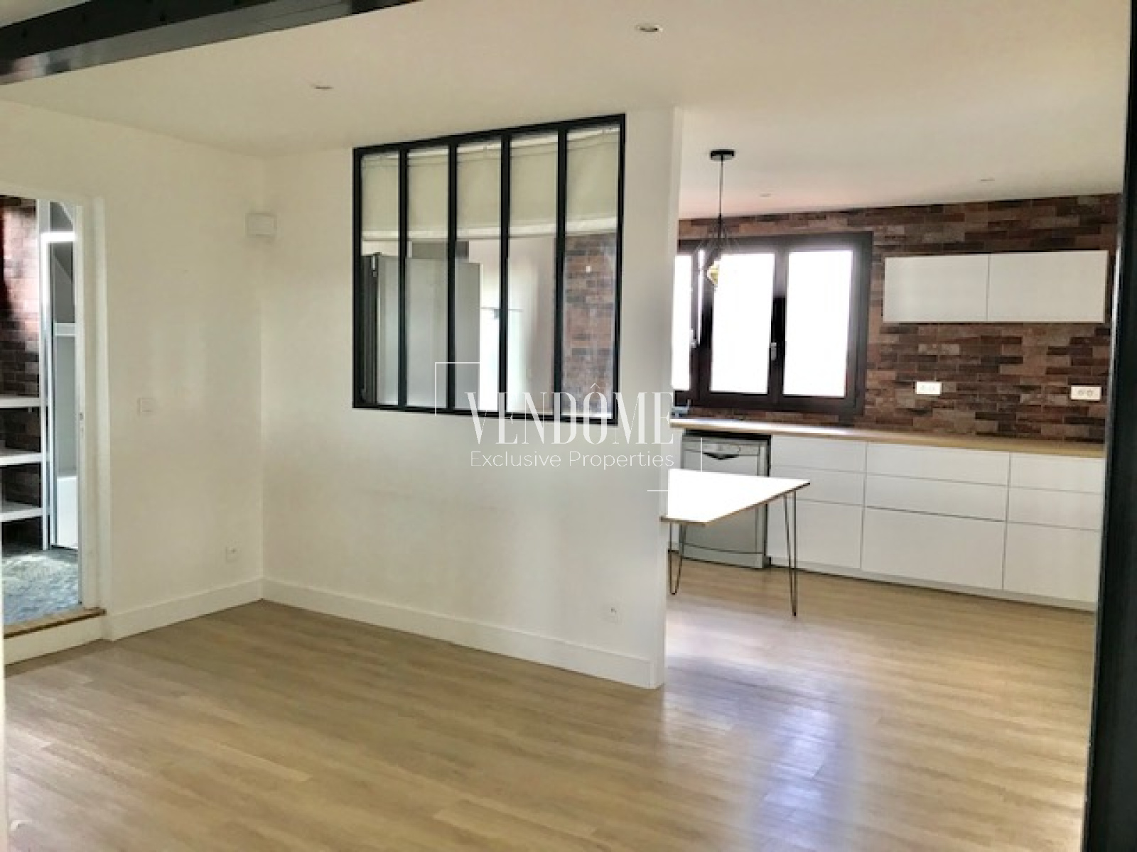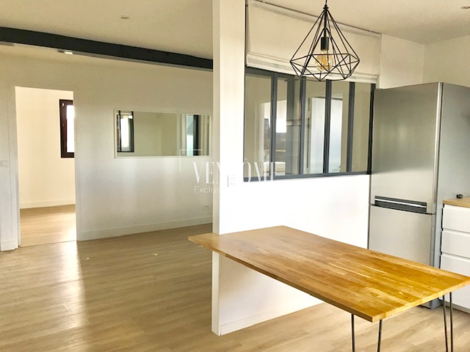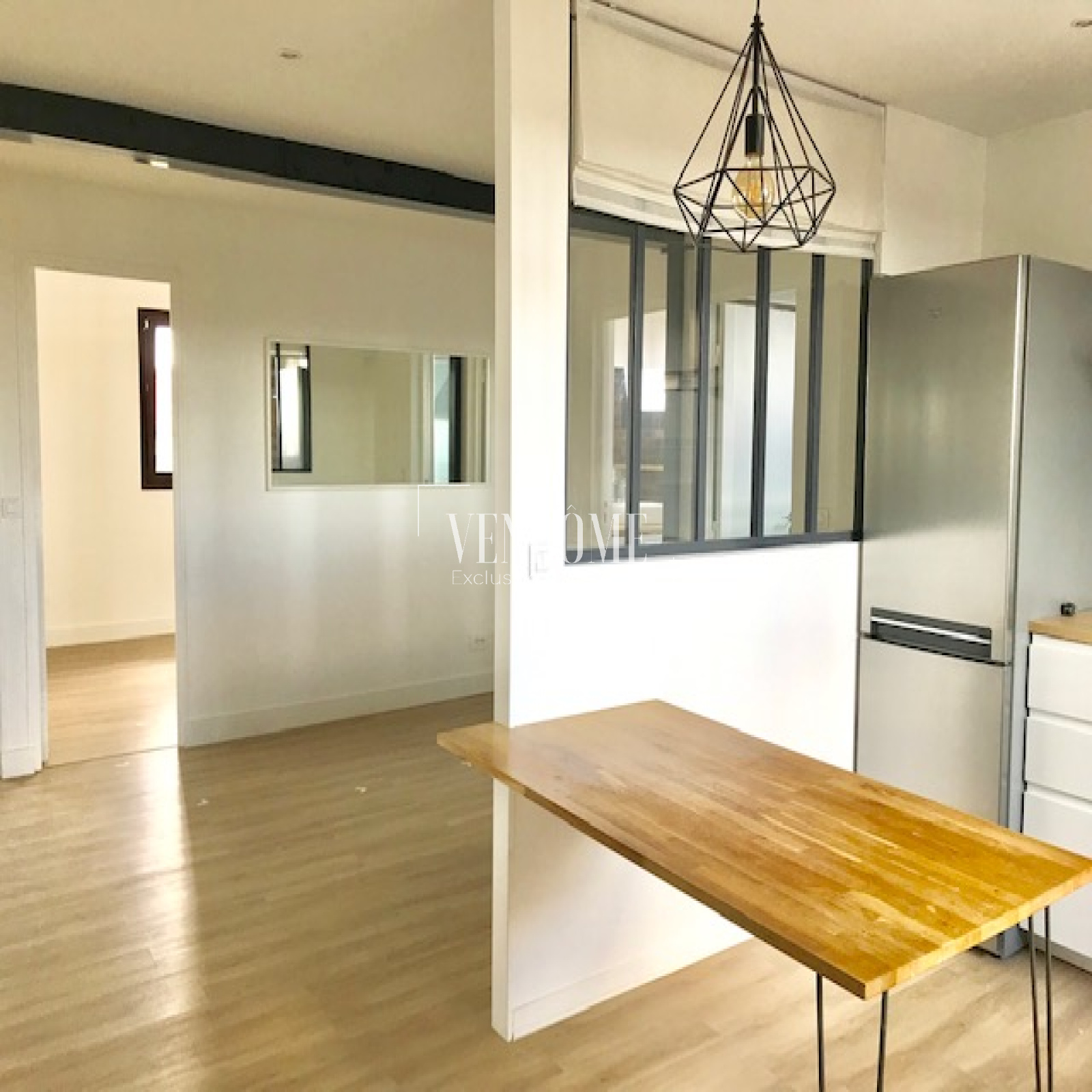 Vendome Exclusive Properties vous propose au coeur d'un quartier résidenciel et en pleine mutation, dans un charmante copropriété arborée avec jardin, au dernier étage, bel appartement entierement rénové de quatre pièces, 75m2 pondéré (71LC 81sol), traversant avec un plan en étoile sans aucune perte de place. Il cimprend: un séjour , une cuisine aménagée et équipée semi-ouverte dinatoire, 3 chambres pourvues d'un dressing aménagé, une salle de bain avec douche à l'italienne et baignoire, une toilette et buanderie. L'appartement est très lumineux et le plan est optimisé. Un accès aux combles depuis l'appartement permet une zone de stokage. Il est complété avec un garage aménagé et lumineux.Nombre de lot dans la copropriété: environ 5. Pas de procédure en cours.