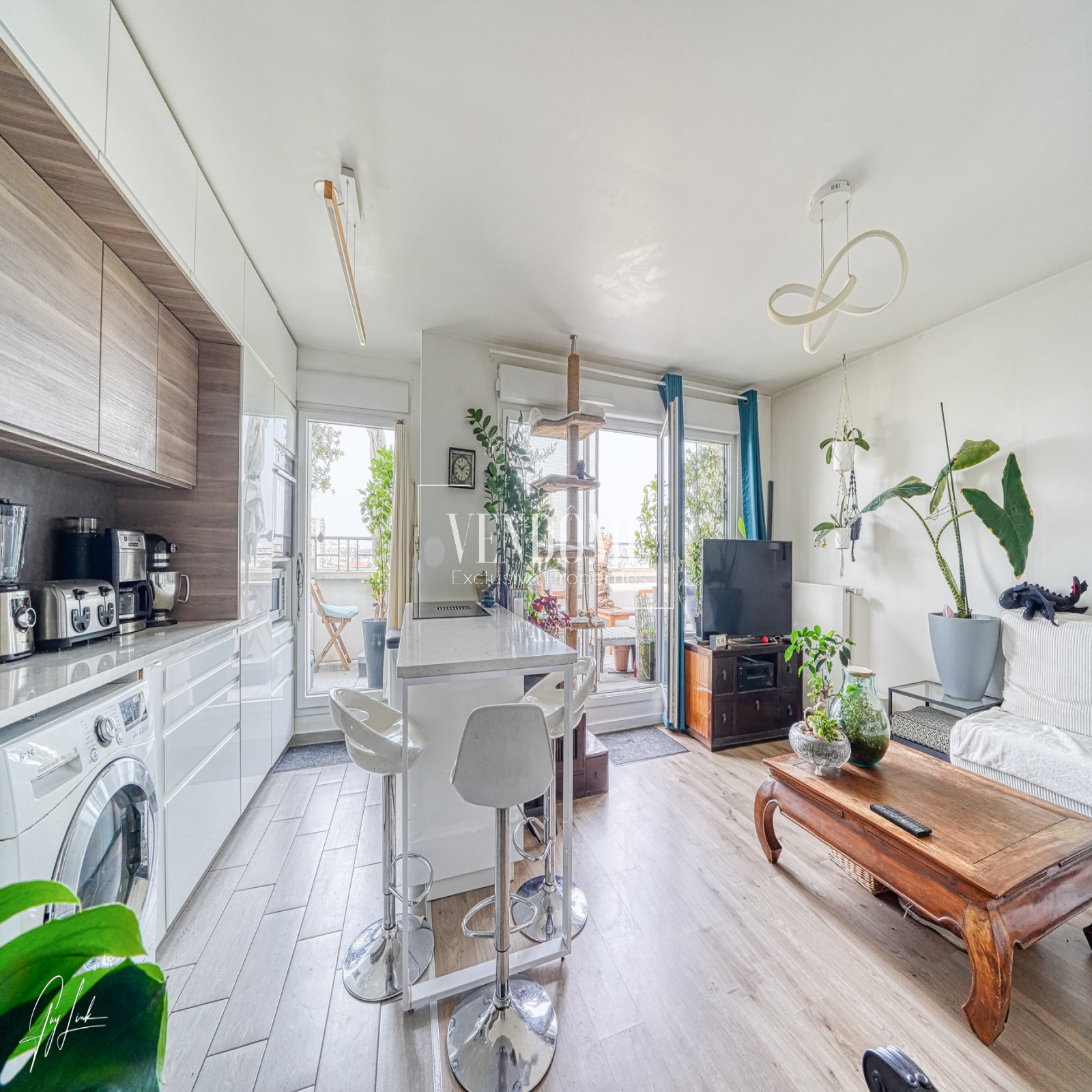 Saint Ouen; Vendôme Exclusive Properties vous propose au cœur du quartier vivant et recherché des Rosiers à Saint-Ouen, à la lisière de Paris, ce bien rare au 8e étage et dernier d’un immeuble contemporain (2019) conjugue élégance, lumière et vue panoramique à 180° sur les toits de la capitale, le Sacré-Cœur et La Défense.