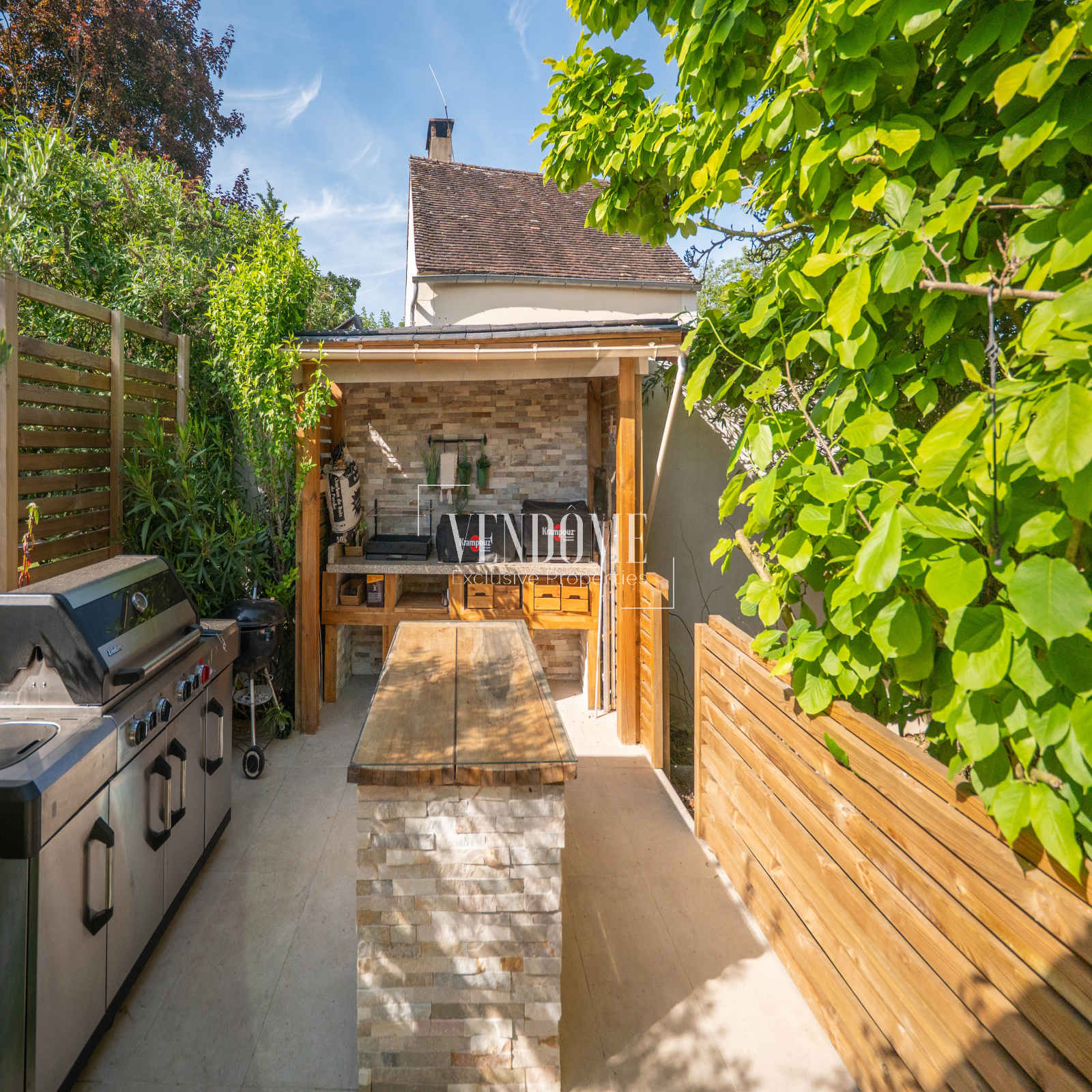 A l'extérieur: Piscine,cuisine d’été,espace barbecue,jardin arboré sans vis-à-vis,et un puits fonctionnel permettant l’arrosage du jardin et l’entretien de la piscine, en toute économie, dépendances, abri permettant de stationner trois voitures.